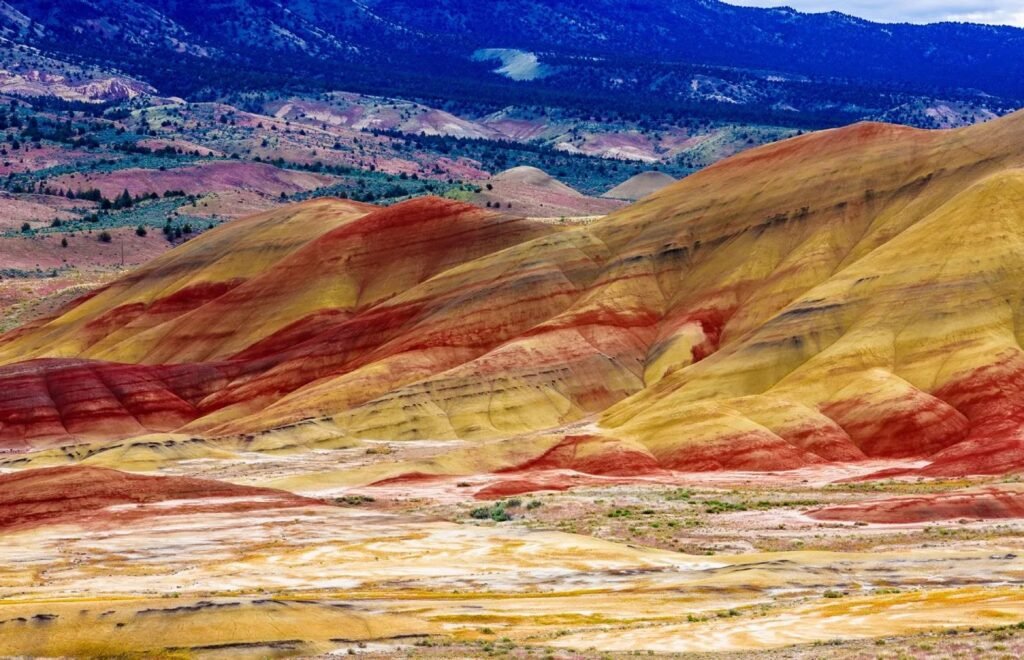 The Painted Hills of Oregon are one of the state’s most iconic sites, known for their rich bands of red, gold, black, and tan. These vibrant layers formed over millions of years through changing climates, volcanic ash, and ancient floods.